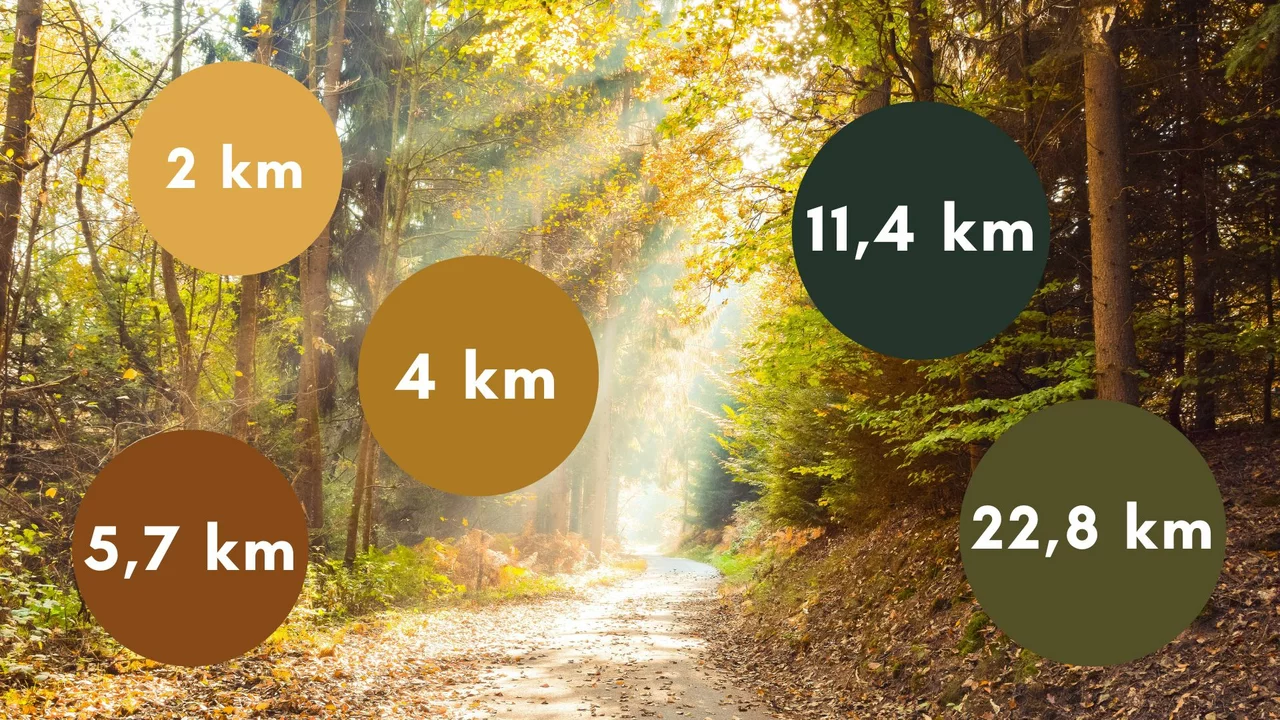 👉 2 km | 4 km | 5,7 km | 11,4 km | 22,8 km