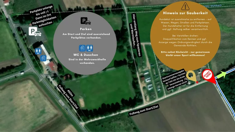 Es stehen Umkleiden, WCs sowie Duschmöglichkeiten für nach dem Lauf in der Mehrzweck-Halle zur Verfügung.